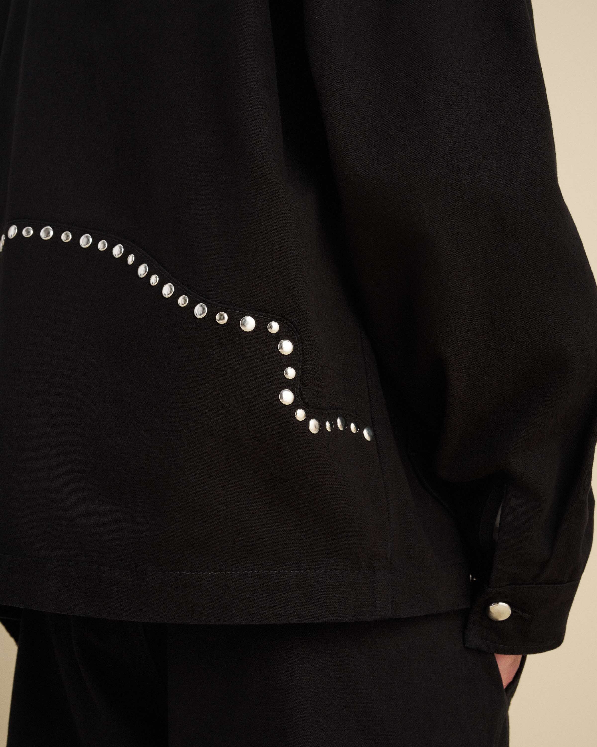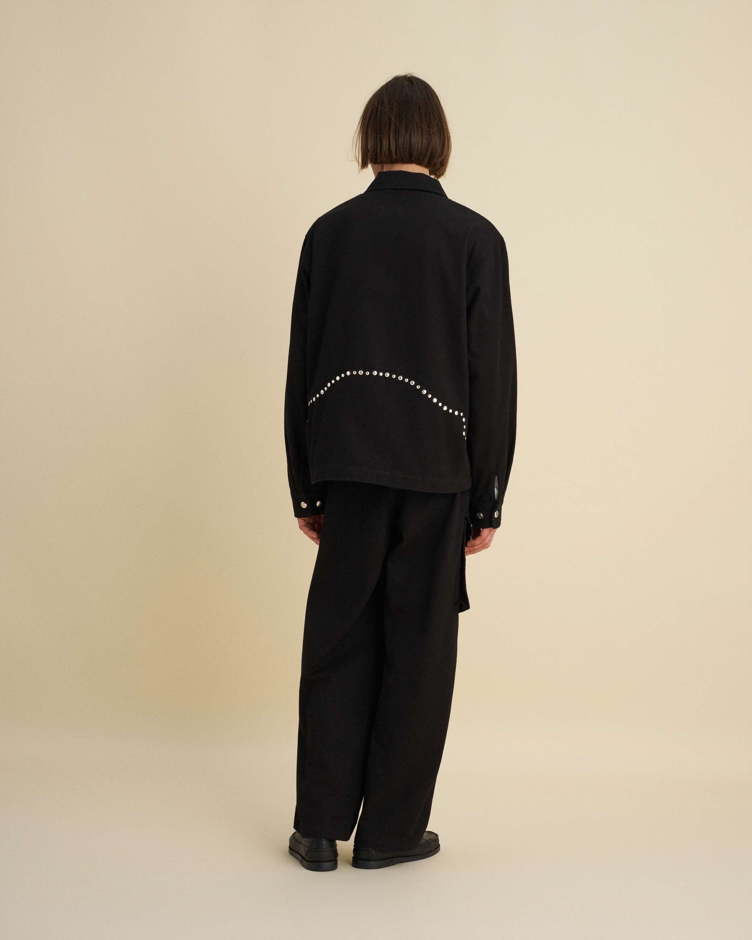 The South Bound Jacket is a regular-fit Brokentwill Jacket with front pockets and a front zip, studs apply on the back stitch, made from 360g/m² Brokentwill Cotton.
